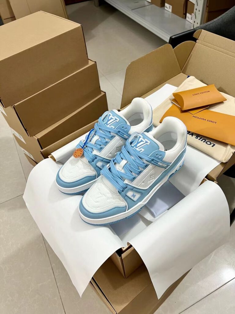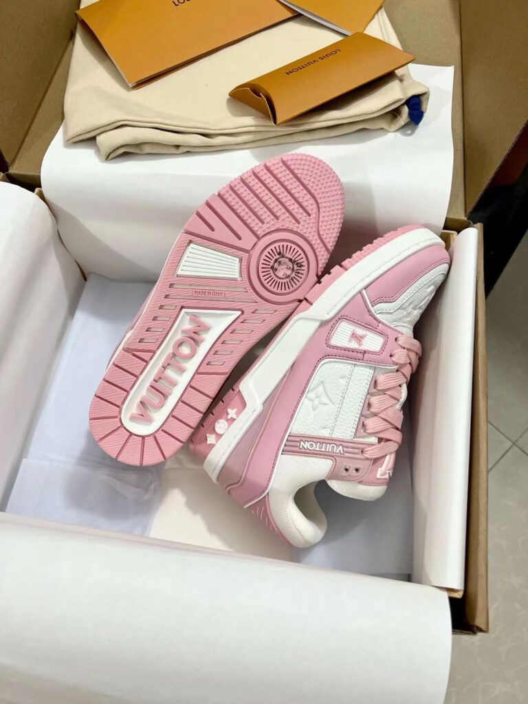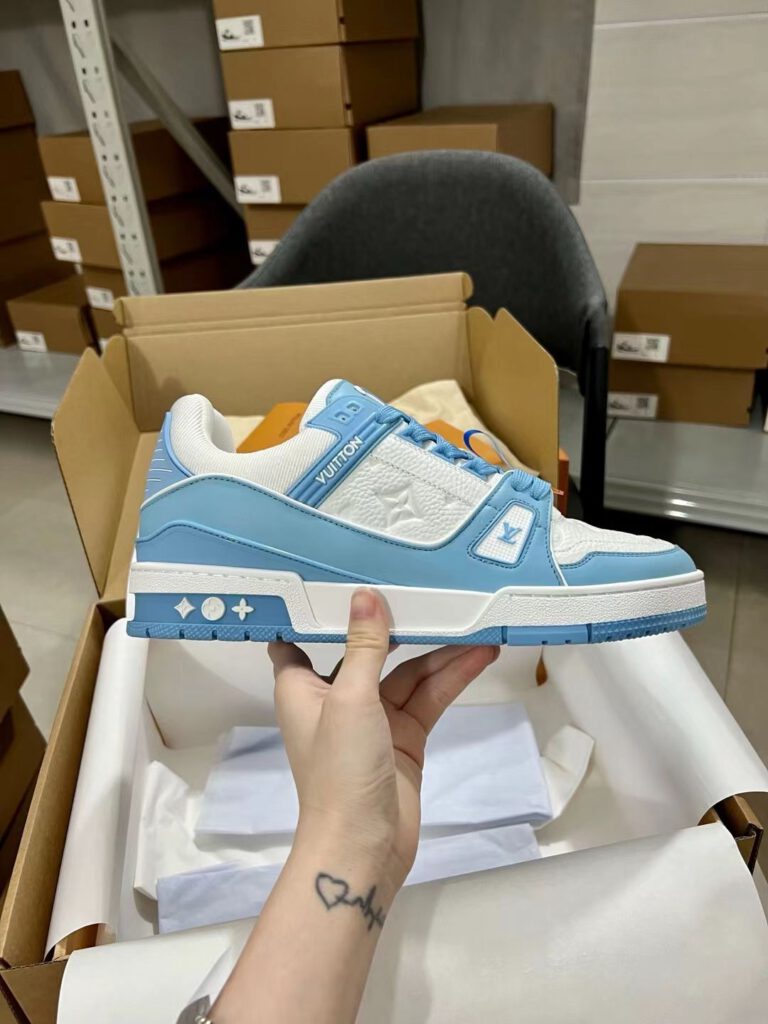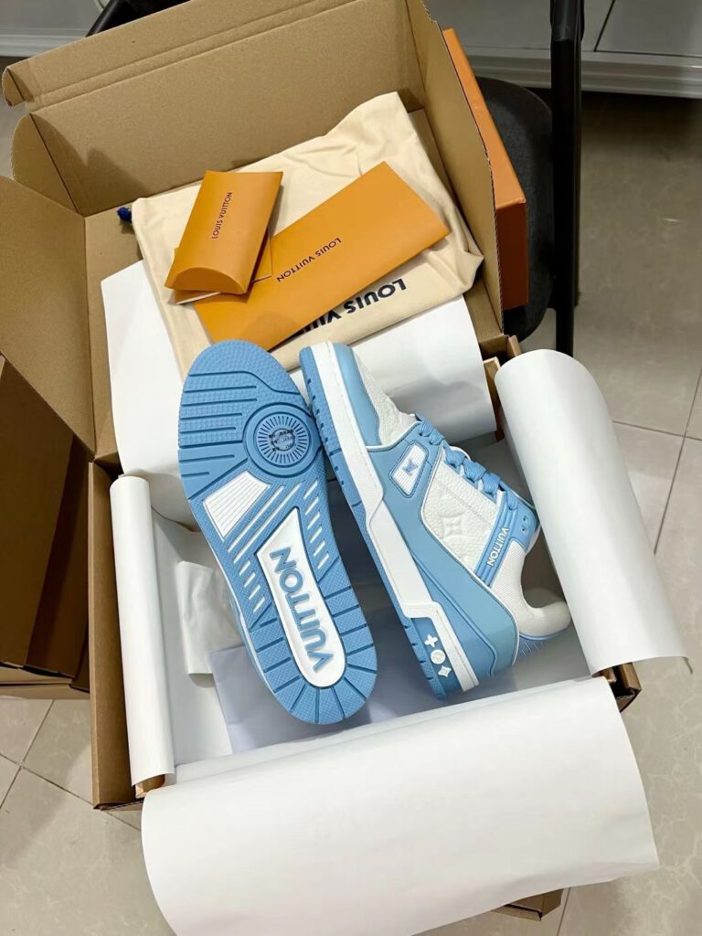 This iteration of the LV Trainer sneaker combines two colors and two materials: nubuck and grained calf leather. The design is complemented by rubber details and gradient laces. This cult sneaker, originally created by Virgil Abloh, was inspired by vintage basketball sneakers and features the Louis Vuitton script signature on the side.