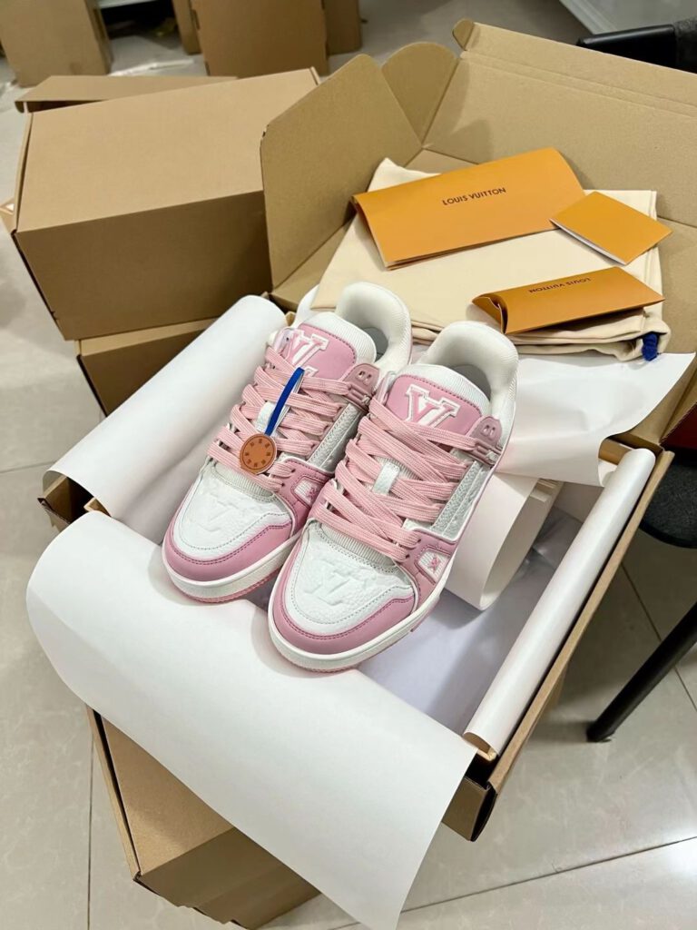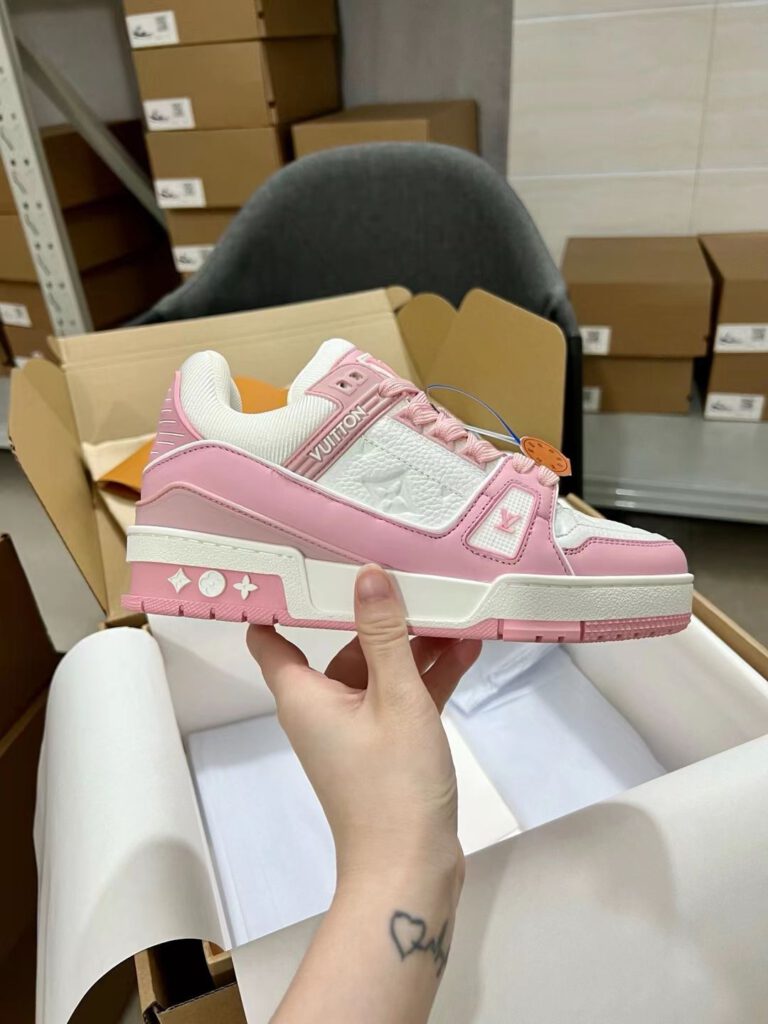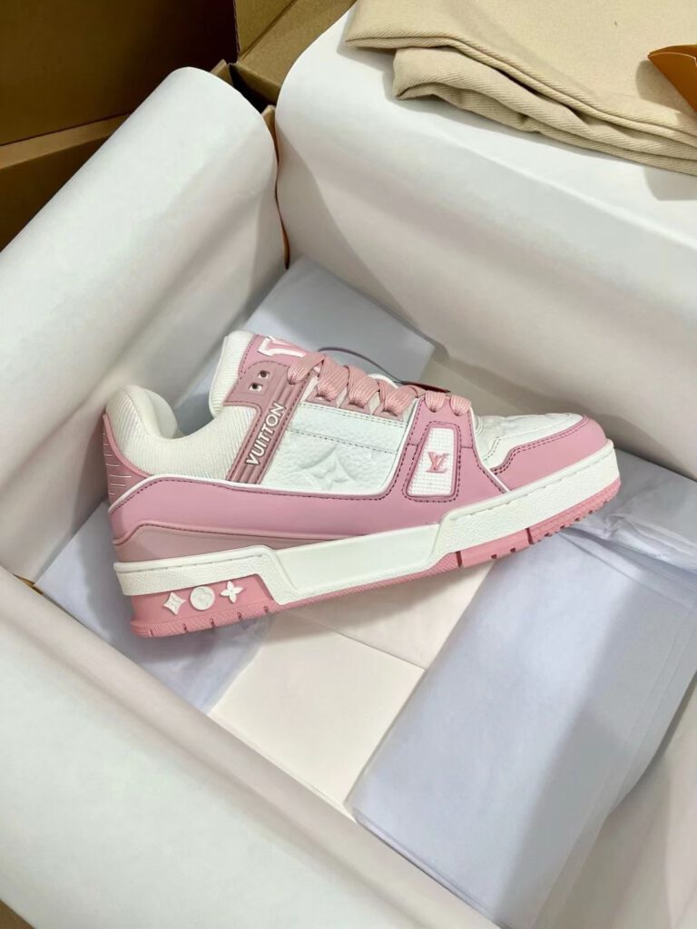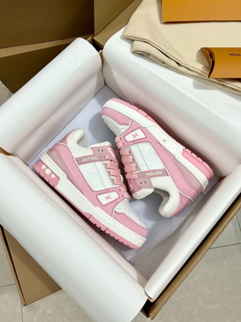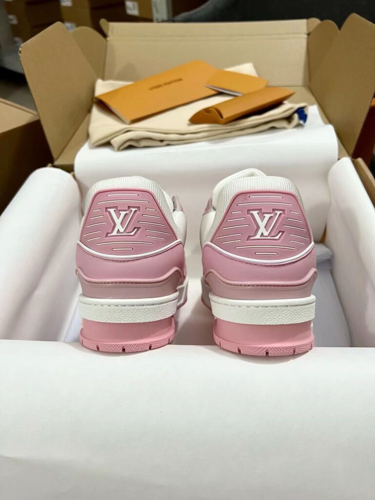 This iteration of the LV Trainer sneaker combines two colors and two materials: nubuck and grained calf leather. The design is complemented by rubber details and gradient laces. This cult sneaker, originally created by Virgil Abloh, was inspired by vintage basketball sneakers and features the Louis Vuitton script signature on the side.