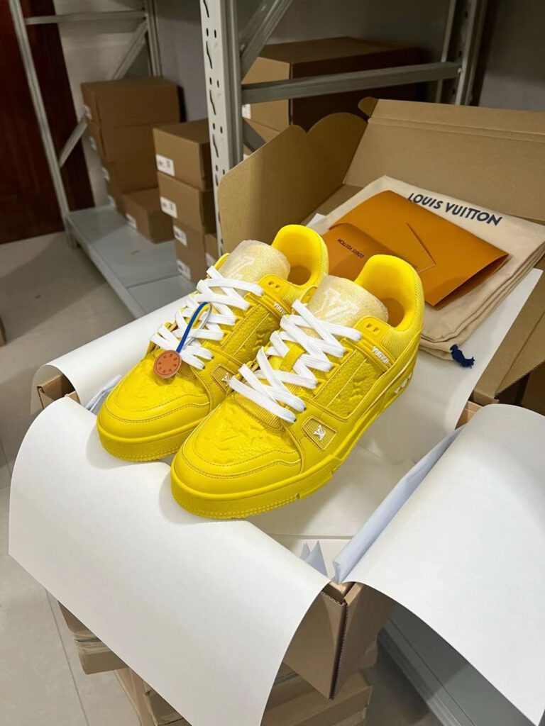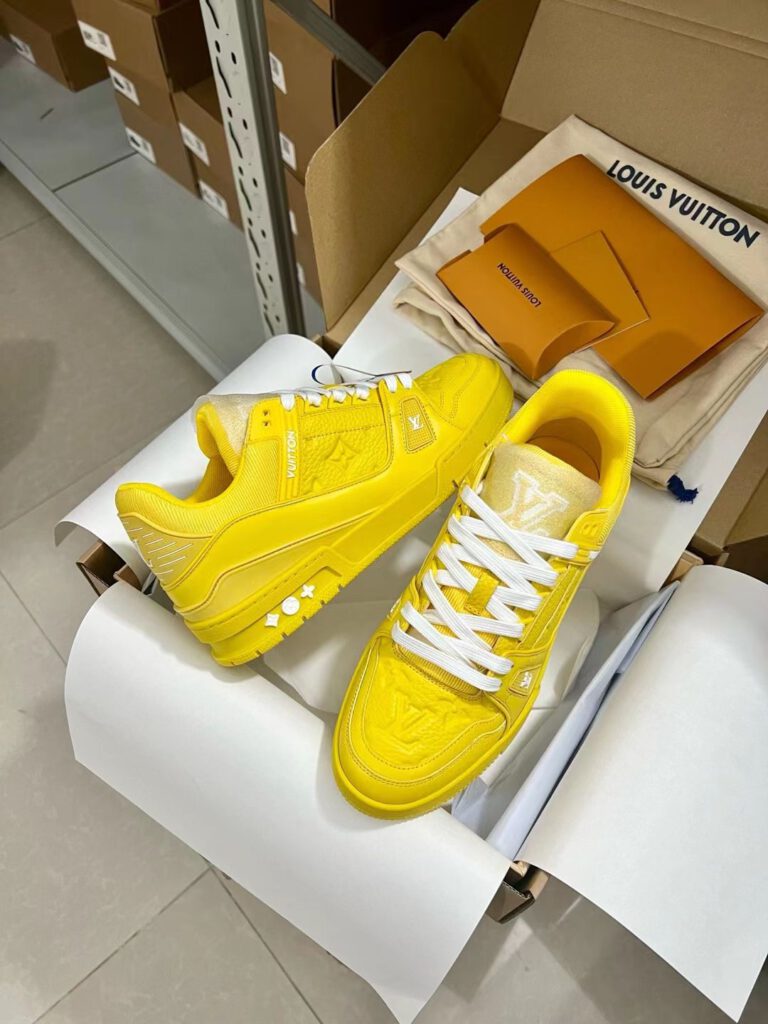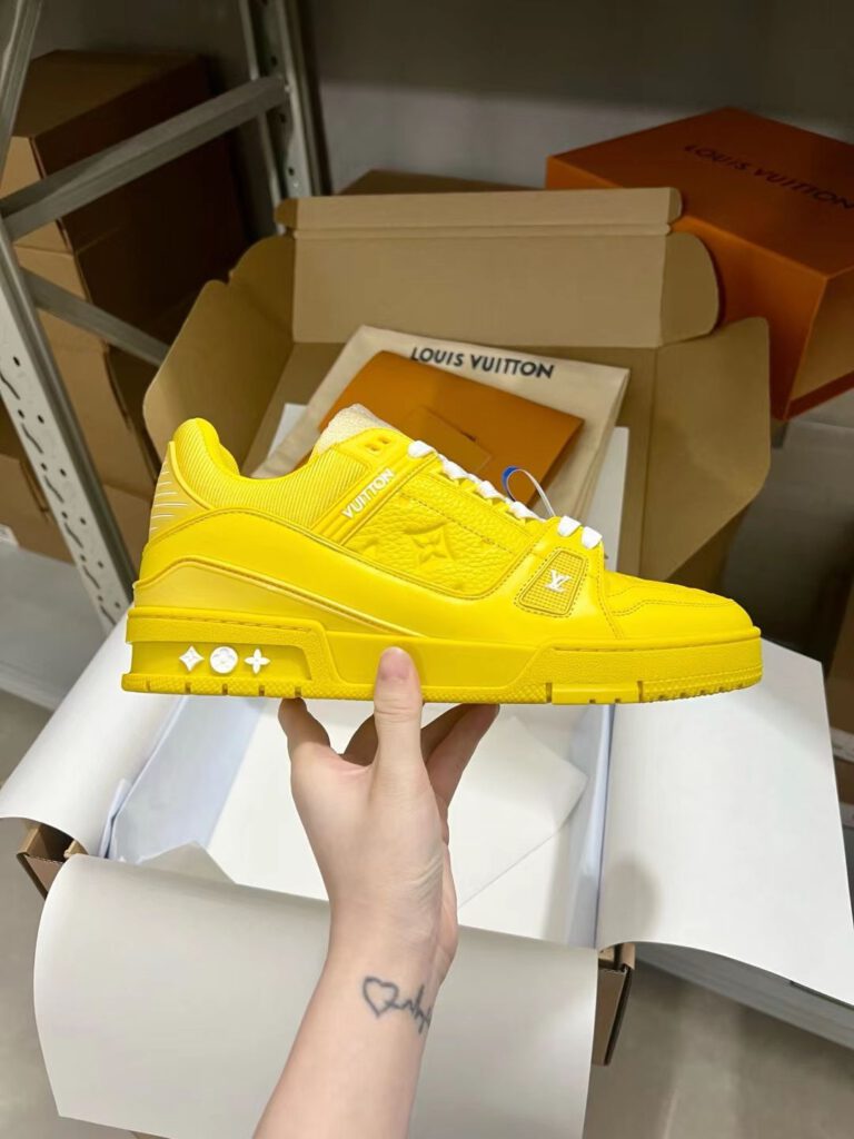 This iteration of the LV Trainer sneaker combines two colors and two materials: nubuck and grained calf leather. The design is complemented by rubber details and gradient laces. This cult sneaker, originally created by Virgil Abloh, was inspired by vintage basketball sneakers and features the Louis Vuitton script signature on the side.
