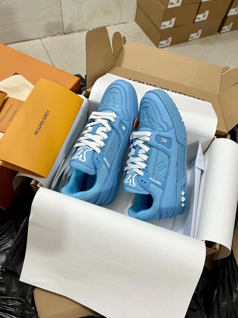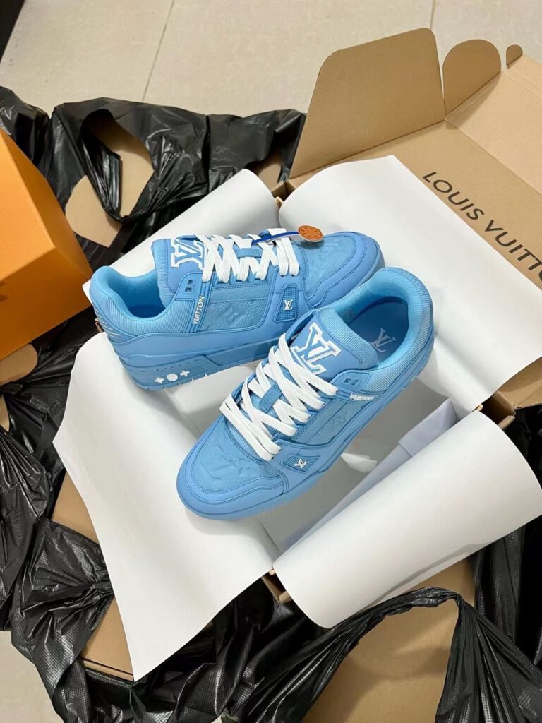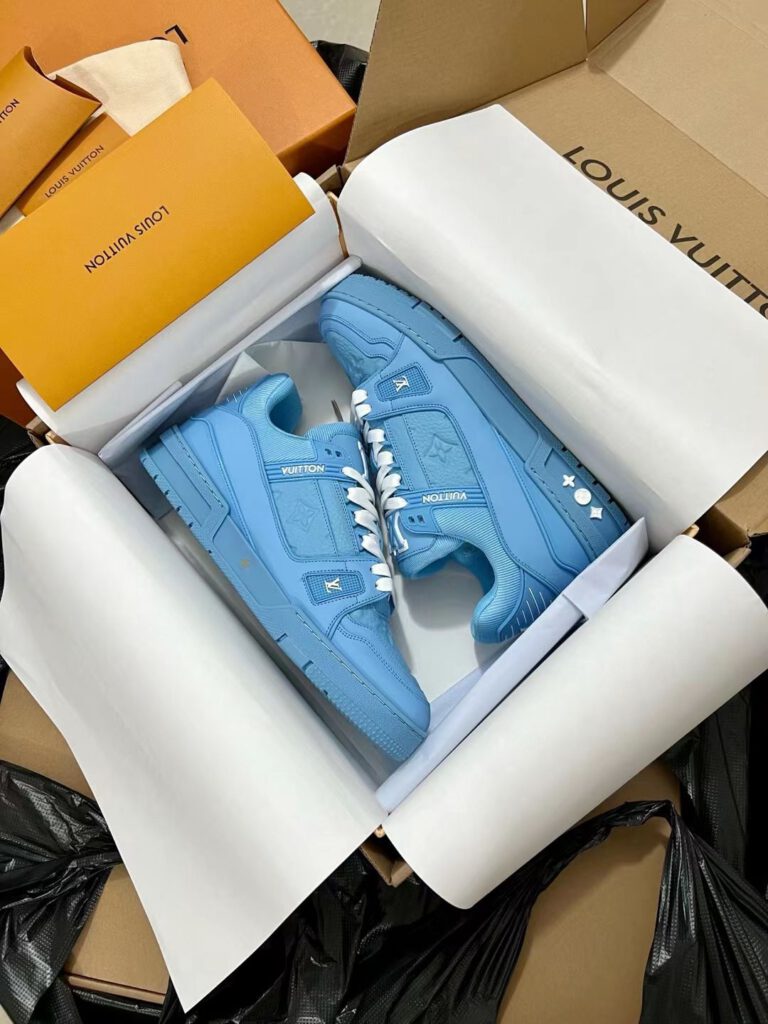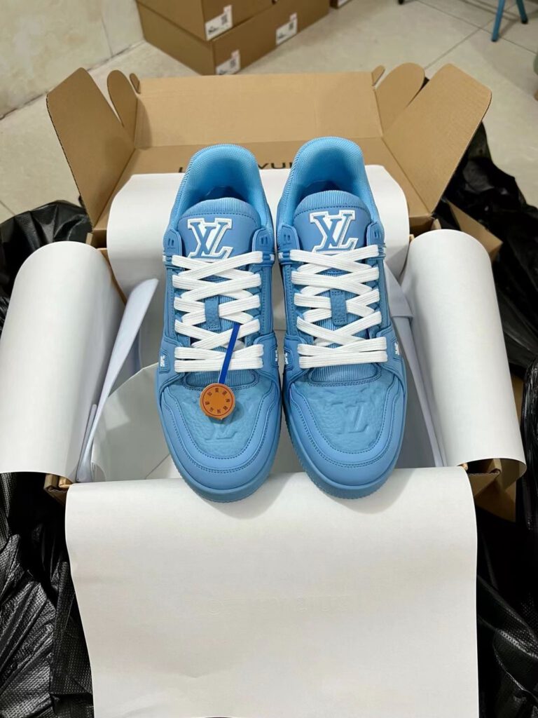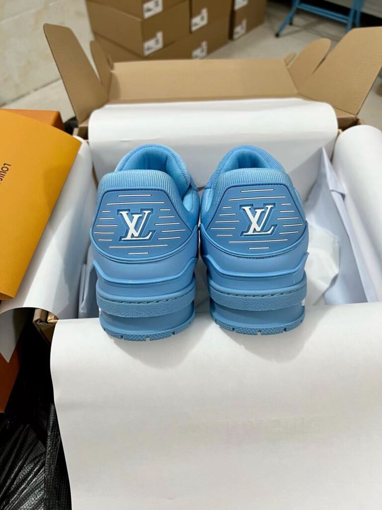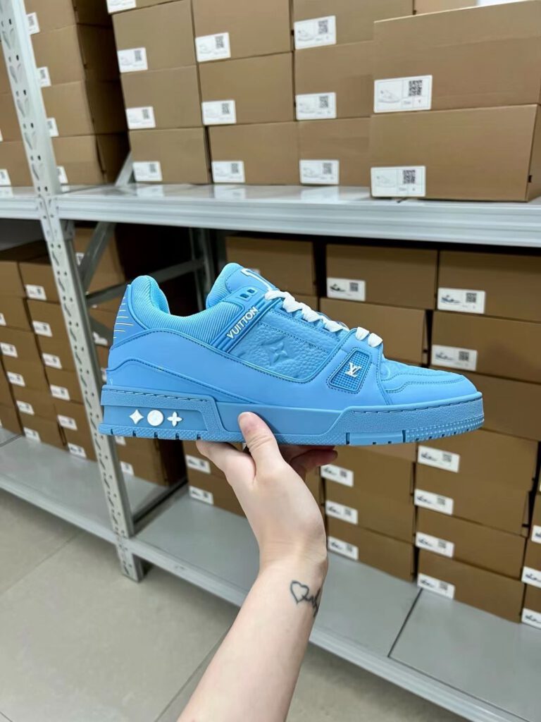 This iteration of the LV Trainer sneaker combines two colors and two materials: nubuck and grained calf leather. The design is complemented by rubber details and gradient laces. This cult sneaker, originally created by Virgil Abloh, was inspired by vintage basketball sneakers and features the Louis Vuitton script signature on the side.